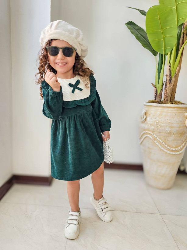 پیراهن یلدایی کبریتی در سه رنگ سبز قهوهای قرمز در پنج سایز مناسب 2تا10سال