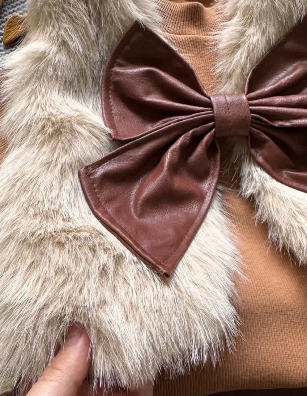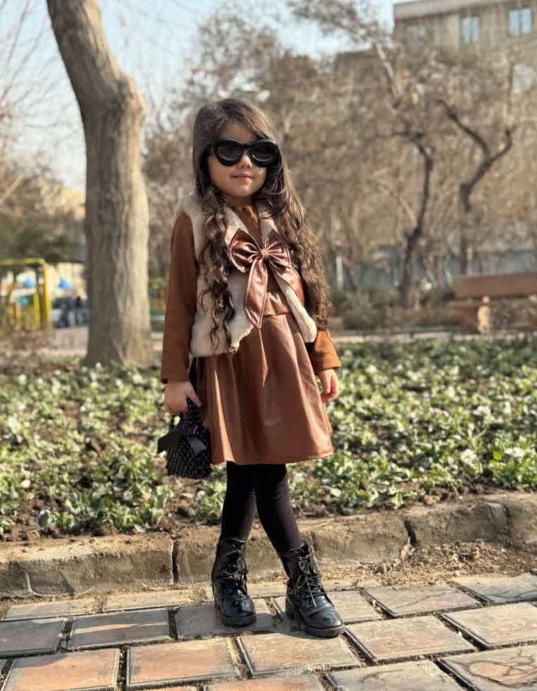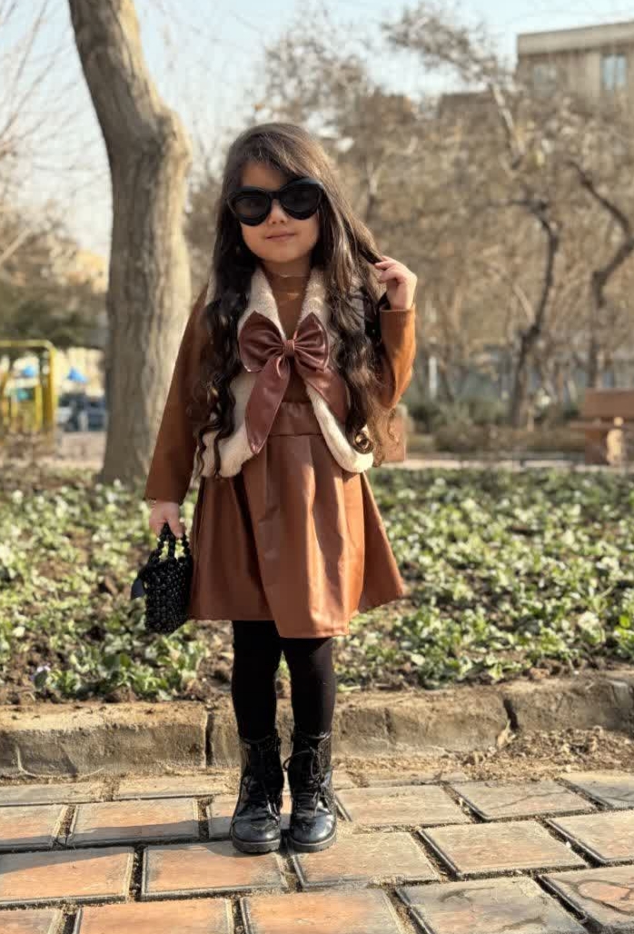 ست چهار تیکه جنس دامن چرم که پوسته پوسته نمیشود جنس ژیله خز وارداتی جنس پیراهن پنبه فانریپ مناسب 2 تا 8 سال